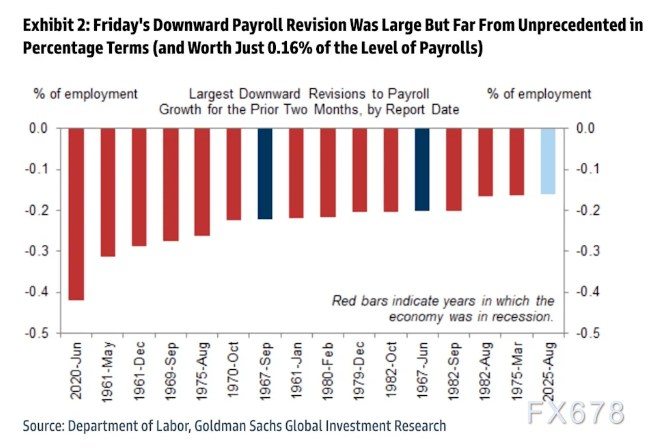 高盛的经济学家认为“美国就业市场现在正接近‘失速速度’——即劳动力市场开始以‘自我强化’的方式弱化。”同时高盛认为“由于就业数据的下调修订,其对潜在就业增长的估计已‘暴跌’,这与过去与衰退相关的其他两个月就业修订相当。经济学家们现在正专注于未来几个月的几个关键指标,这些可能是即将来临的衰退的早期预警信号。”