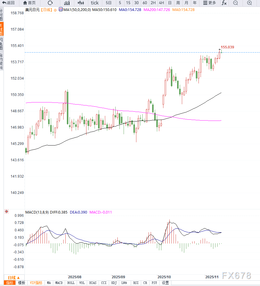 近期美国10月就业数据和消费者信心指数均走弱,强化了市场对宽松政策的预期。这与日本央行可能在年底前加息的信号形成了鲜明对比,使得美元兑日元走势出现短期分歧。